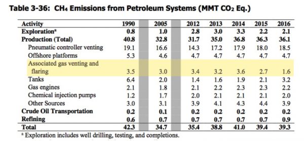 “Petroleum systems CH4 emissions decreased by 3.0 MMT CO2 Eq. (or 7.2 percent) since 1990. This decrease is due primarily to decreases in tank emissions and associated gas venting…”