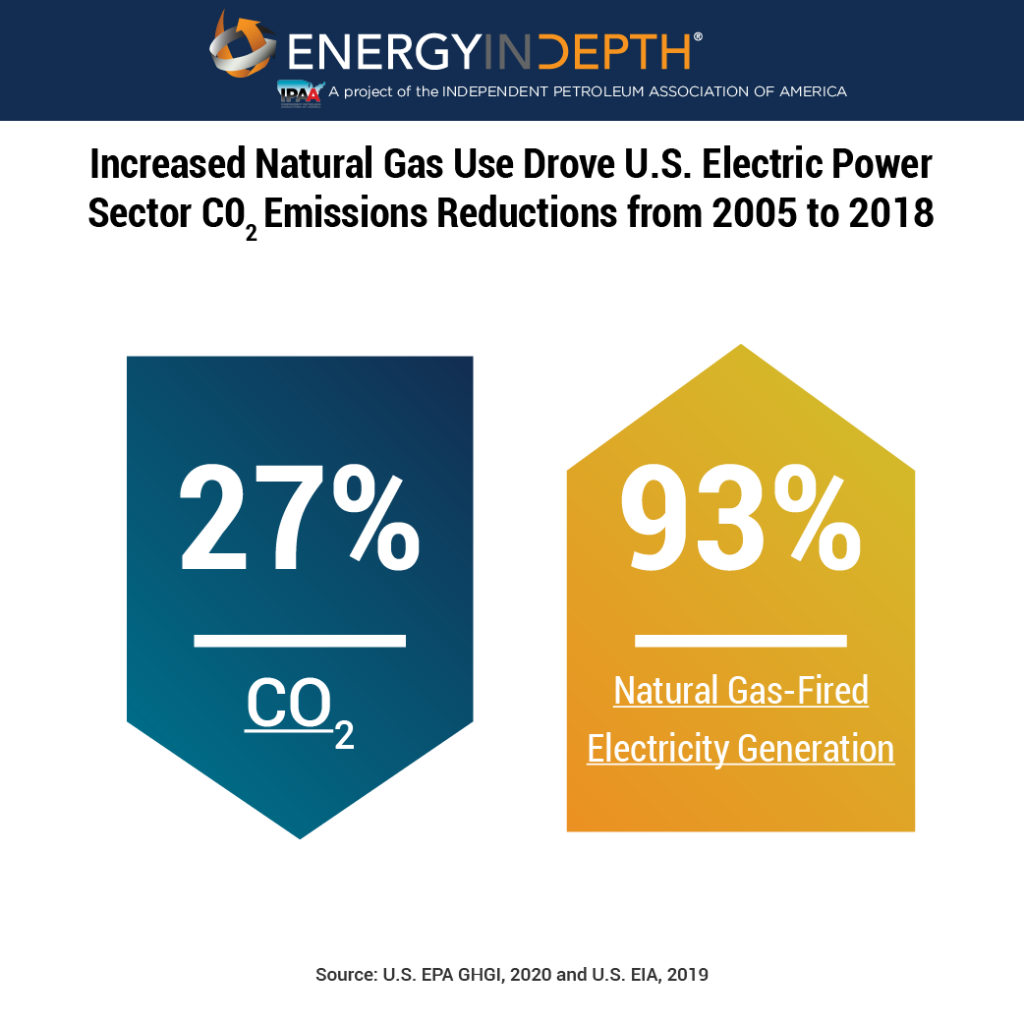 “The decrease in coal-powered electricity generation and increase in natural gas and renewable electricity generation have contributed to a 27 percent decrease in overall CO2 emissions from electric power generation from 2005 to 2018.”