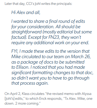 Later, Alyssa Johl from CCI provided legal edits to Klass’s memo: