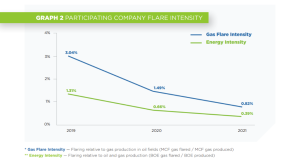 “In 2021, there was a 40 percent increase in the number of participating companies in the flare management programs. These companies represent 62 percent and 40 percent of total U.S. oil and natural gas production, respectively. Including new company participants, there was a 45 percent reduction in flare intensity and a 26 percent reduction in total flare volumes from the previous year.”