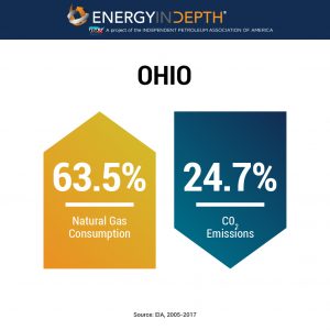 Since 2005, Ohio has reduced its emissions by more metric tons of C02, than any other state in the country. In fact, between 2005 and 2017, state emissions have declined by 67 million metric tons or 24.7 percent, according to U.S. Energy Information Administration data. Meanwhile, Ohioans consumed 63.47 percent more natural gas than they did in 2005, and have plans to build several new natural gas-fired power plants.